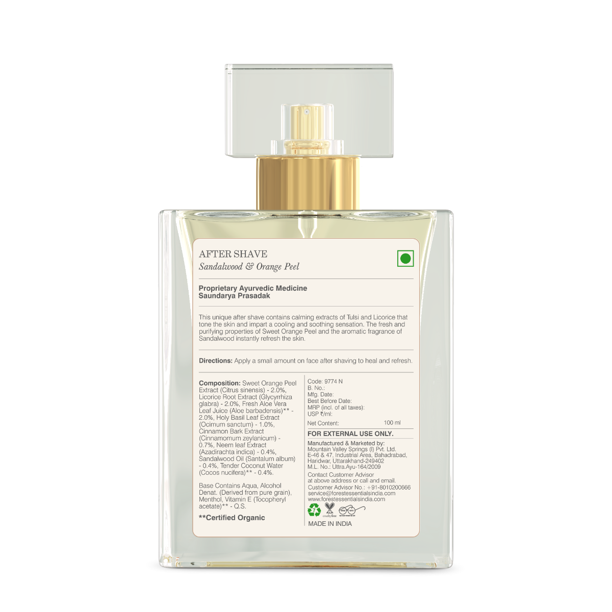 The Sandalwood & Orange Peel After Shave is enriched with soothing extracts of Tulsi and Liquorice, offering a cooling effect while toning the skin. Its unique formulation combines purifying Sandalwood, invigorating Sweet Orange Peel, and the hydrating properties of Aloe Vera to revitalize and refresh instantly.