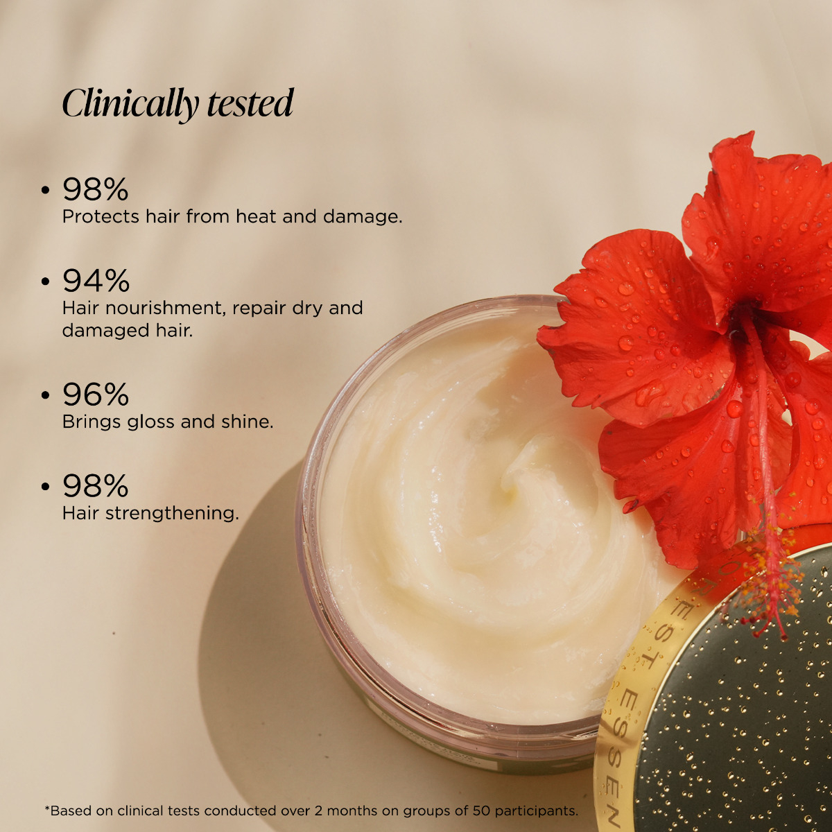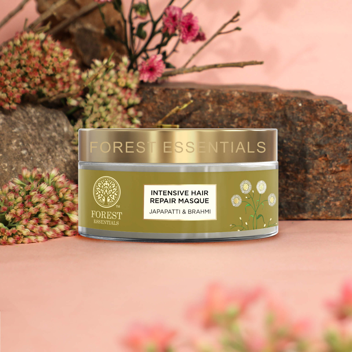 | This luxurious, creamy pre-shampoo masque, the Forest Essentials Intensive Hair Repair Masque Japapatti & Brahmi, is crafted with powerful herbs and natural ingredients such as banana pulp and fresh herbal infusions of methi, brahmi, and nagarmotha. Packed with potassium, natural oils, and vital vitamins, these components work together to deeply repair, hydrate, and nourish your hair, leaving it soft, healthy, and full of shine.